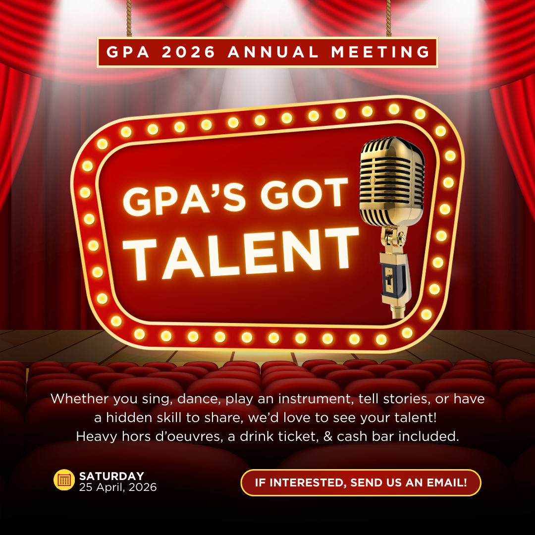 Join us for an evening headlined by Dr. David Woodsfellow’s band, Dr. Dave and Friends, alongside a DJ and a spoken word performance by Dr. Sy Hudgins. GPA’s Got Talent will highlight these special acts, with heavy hors d’oeuvres, a drink ticket, and a cash bar included in your registration.